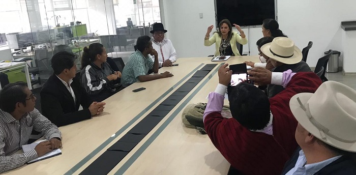 Franklin Columba, agradeció la apertura del ministro de Agricultura y Ganadería, Xavier Lazo, a las peticiones de los pequeños productores de esta organización. Añadió que “es necesario establecer una política pública integral, para que empecemos a mejorar la productividad y los costos de producción”. Pie de foto: Reunión de la Mesa Técnica de Alto Nivel.