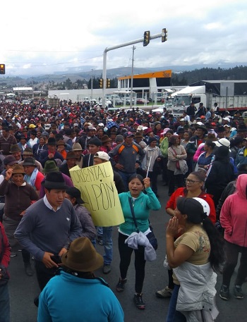 El pedido de los principales dirigentes del Movimiento Indígena y Campesino de Cotopaxi (MICC) y que estuvieron acompañados por el prefecto Jorge Guamán, la vice prefecta Silvia Bravo, pero además de Bolívar Armijos, presidente de CONAGOPARE a nivel nacional, quien lució un poncho rojo y un sombrero, que ha momentos se confundió con los campesino de la provincia.