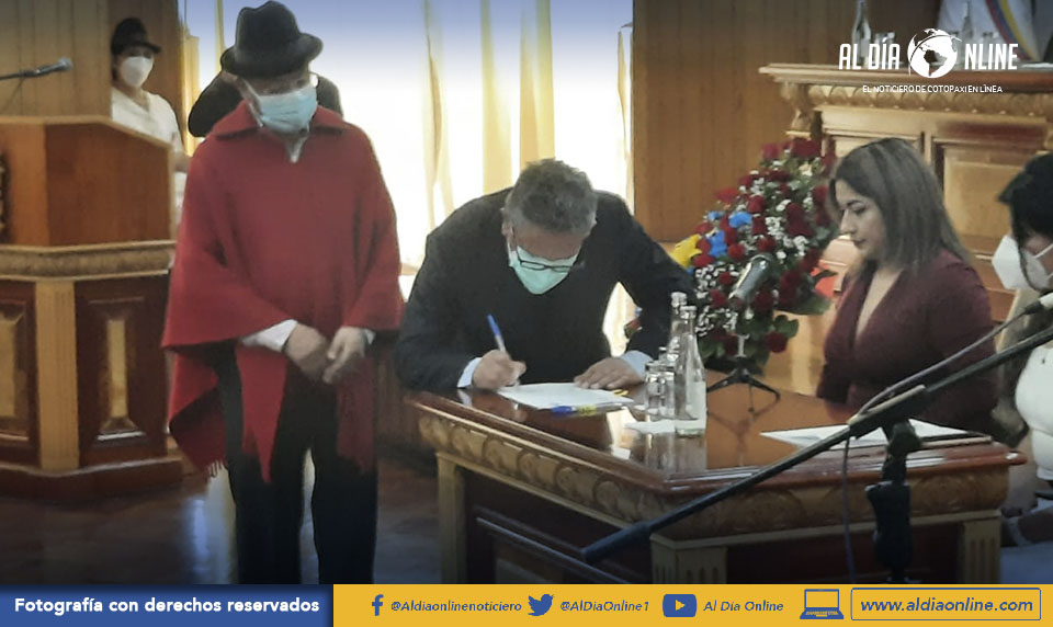 Durante la ceremonia, se dio la firma de 5 convenios de cooperación institucional, entre ellos el firmado por parte del GAD Provincial de Cotopaxi con la Universidad Técnica de Cotopaxi, para implementar un laboratorio de los servicios de la calidad del agua; el segundo, firmado con el Instituto Geográfico Militar (IGM), con el objetivo de garantizar la operación de la estación (GNSS), otorgando los permisos para que GADP Cotopaxi pueda utilizar los datos que de ahí provengan; el tercero con el Cuerpo de Bomberos y Aglomerados Cotopaxi, para la regulación, control y prevención de incendios forestales en la provincia; el cuarto con fundación Maquita, esto para fortalecer la comercialización de los productos de la economía popular y solidaria en la provincia; y el último realizado con la Facultad Latinoamericana de Ciencias Sociales (FLACSO) para procesos de profesionalización de los funcionarios del GPC.