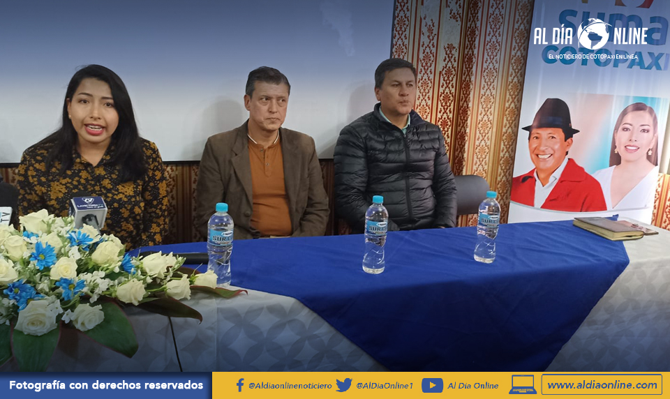 Cristina Chávez, pre candidata a la vice prefectura de Cotopaxi, fue la encargada de llevar a delante esta rueda de prensa y les acompañó los pre candidatos alcalde como Rodrigo Espín (Latacunga, Juan Paúl Pacheco (Salcedo) y Arturo Ashca (Saquisilí).