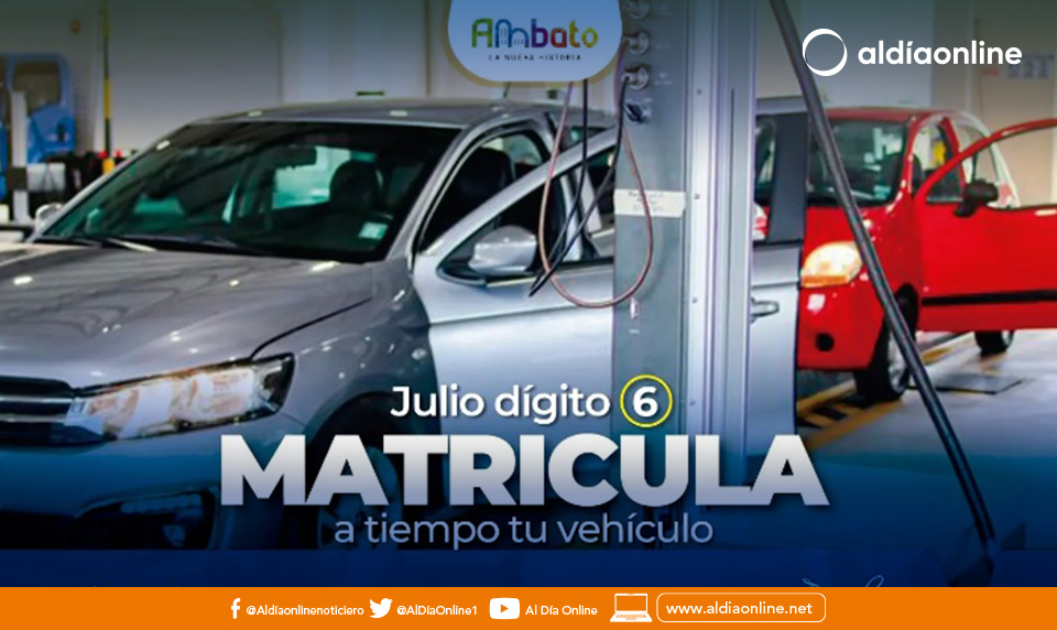 La Unidad de Matriculación Vehicular, recuerda a la ciudadanía que en el mes de julio debe obligatoriamente realizar la matricula del dígito 6 y así evitar multas por calendarización.