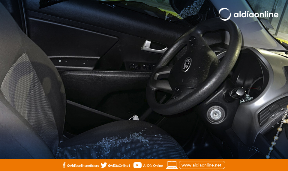 En la publicación muestra fotografías de cómo quedó su vehículo, con el vidrio del conductor roto.