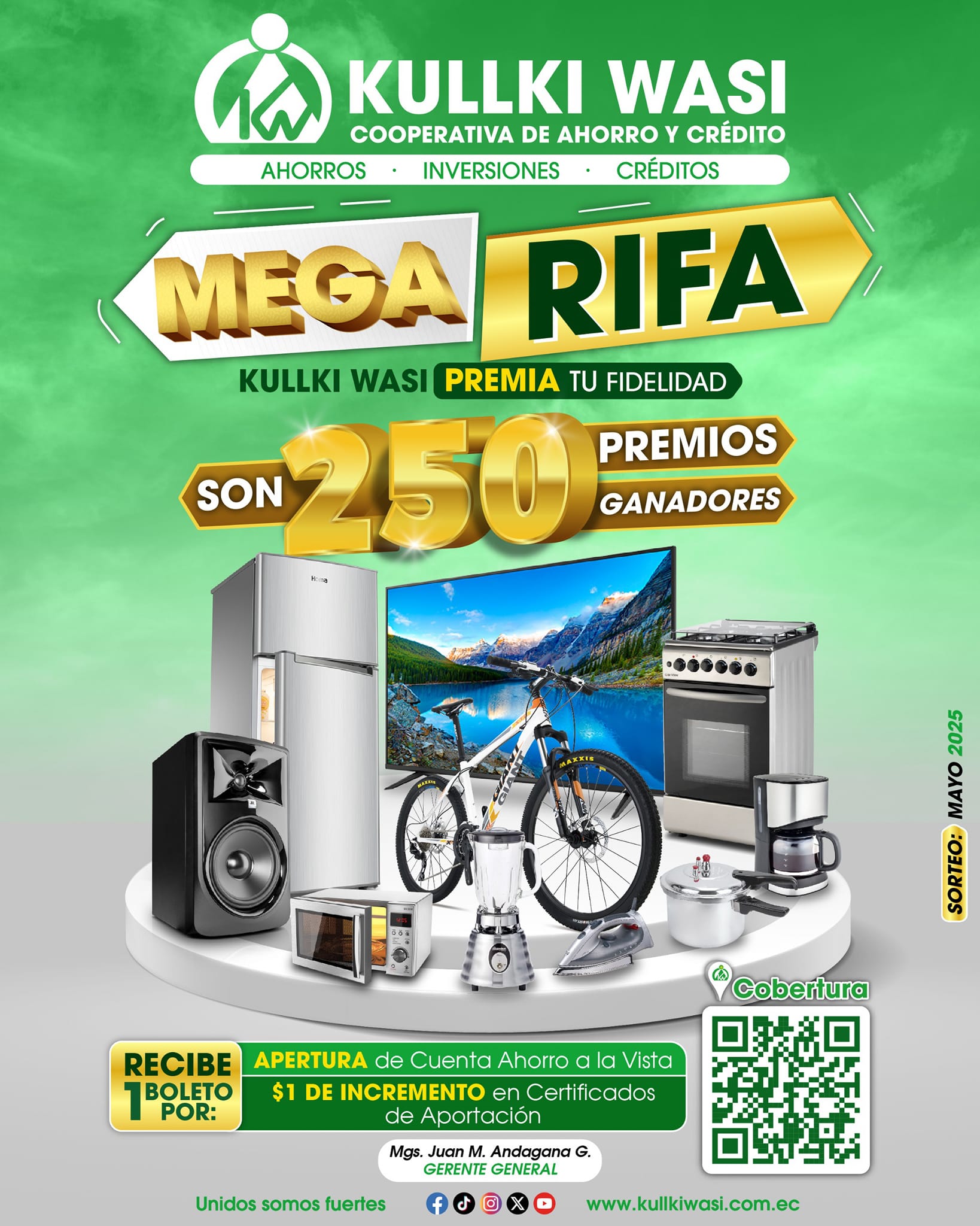 La mañana de este viernes 18 de octubre en la matriz de Cooperativa de Ahorro y Crédito Kullki Wasi, se hizo la presentación oficial de la denominada Mega Rifa, al contar con 250 premios para sus socios.