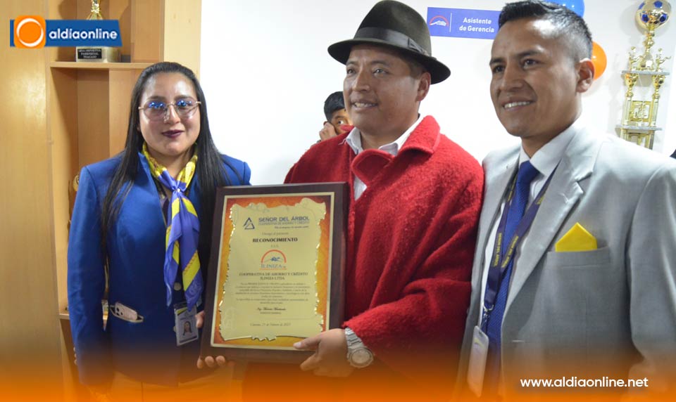 Felicitaciones y entrega de placas de reconocimiento de cooperativas amigas, recibió Jhony Morocho, Gerente de COAC Iliniza Ltda y el compromiso para hacer de la cooperativa, el fortalecimiento económico de Toacaso, el cantón Latacunga y la provincia en general.