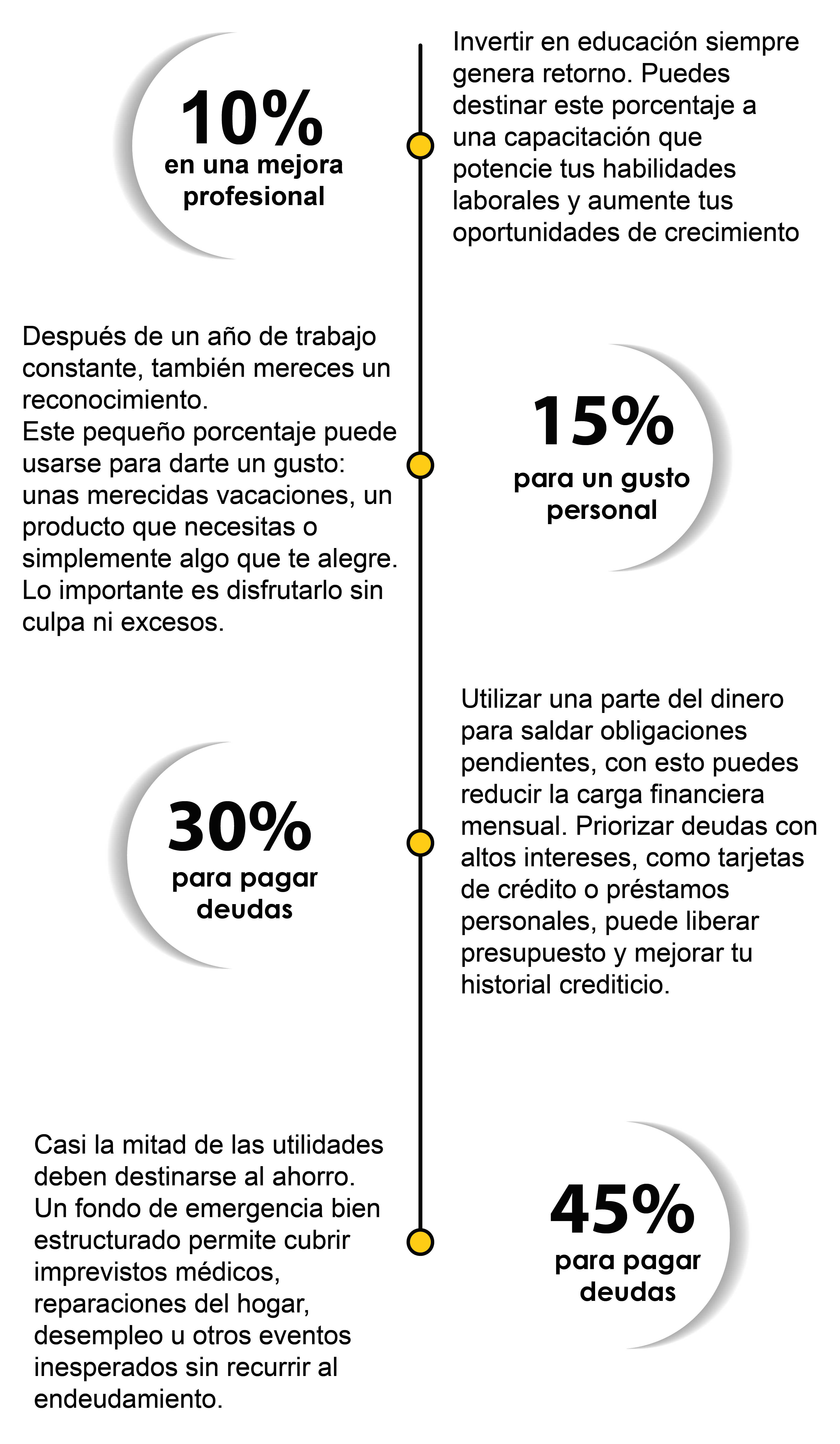 Esta es una gran oportunidad financiera, pero también puede convertirse en un riesgo si no se administra correctamente. Por eso, la clave está en saber distribuir este ingreso de forma estratégica. Para ello queremos darte una recomendación práctica para sacarle el máximo provecho, este es dividirlo en cuatro partes: