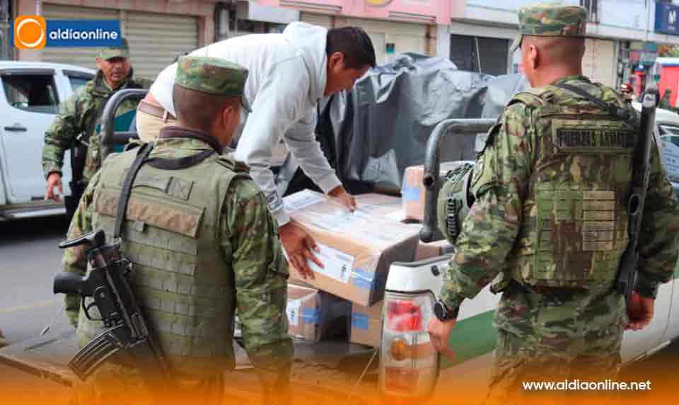 El operativo se desarrolló con resguardo de las Fuerzas Armadas, responsables de la custodia del material en todo el proceso cuyo objetivo es asegurar que los recintos estén completamente listos para la jornada.