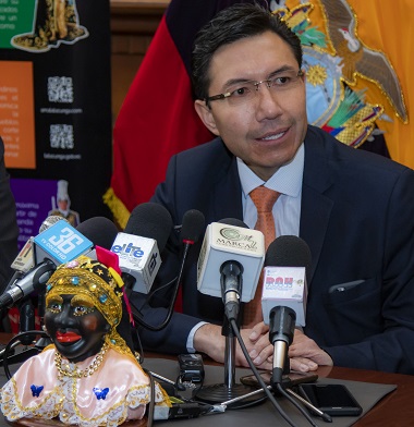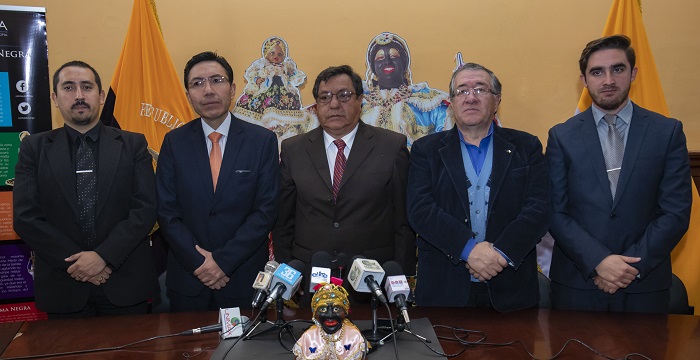 Este lunes en las instalaciones de la municipalidad de Latacunga y con la presencia del Alcalde y presidente del Comité de Mama Negra, Jorge Ricardo Medina Mama Negra 2017-2018, Cristian Montenegro Director de Turismo y de Carlos García Director de Cultura, se hizo la presentación oficial del flamante Mama Negra 2018 -2019.